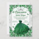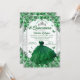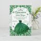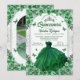 Emerald Green Silver Glitter Floral Quinceanera Invitation