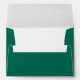 Emerald green colour mailing envelope for your wedding invitations and features your name and address printed on back flap in a modern script style. Personalise your envelope by editing and replacing name and address with your own. Edit further to change font style or colour. Select your envelope size that fits your invitation.