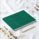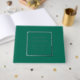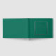 Solid emerald green colour, simple wedding guest book with stylised foil print within a square border that features the bride and groom's name along with wedding date in your choice of colour foil print. Seen here in silver foil print. Select your guest book style.