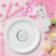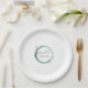 Paper plates for your bridal shower that feature grey, stylised script on a trendy, emerald green colour, simple wreath design that complements the bridesmaid wedding colour scheme. Select your paper plate style and size.