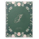 Emerald Green Soft Monogram Floral Personal Custom Notebook