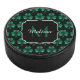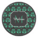 Emerald Green Sparkle Shamrock black Monogram Hockey Puck