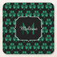 Emerald Green Sparkle Shamrock black Monogram Square Paper Coaster