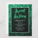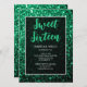 Emerald green sparkles Sweet 16 elegant script Invitation