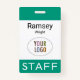 Easily personalise our professional staff name badge with your company logo, employee name, or other custom text. It's pvc plastic and available with a lanyard, clip, or a retractable reel. Designed in emerald green and other colours with a modern minimalist design by MISOOK. All colours are customisable. No minimum order quantity and no setup fee.