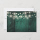 Emerald Green String Lights Rustic Wood Wedding RSVP Card