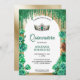 Chic Emerald Green Glitter Tiara Quinceañera Floral Arch Invitation 16 Birthday Invitation, insert photo