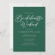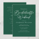 This solid emerald green bachelorette weekend invitation features classic white script for a bride who loves the outdoors and nature. Celebrate your friend with this tranquil colour on this chic, minimalist bachelorette party invite.