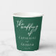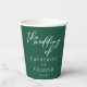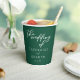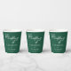 This solid emerald green wedding reception paper cup features classic white script for a couple getting married in a forest or other nature venue. Celebrate your love with this tranquil colour and coordinate with our matching minimalist typography collection.