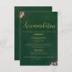 Make it easy for guests to plan their stay with this elegant emerald green velvet wedding enclosure card. Featuring a sophisticated faux gold script and leaf accents, this double-sided card provides accommodation information on one side and the wedding weekend itinerary on the other. Perfect for formal, romantic, and destination weddings. Customise with your own hotel details, dates, and events to coordinate seamlessly with your wedding stationery suite.