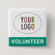 Easily personalise our square pin back button name badge with your organisation logo or custom text. It attaches with a safety pin back. Sold in emerald green and other colours (all colours are customisable). Our square buttons are 2 inch x 2 inch. Made in USA. No minimum order quantity and no setup fee.