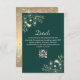 Enhance the elegance of your wedding ensemble with our elegant emerald green Wedding Details Enclosure Card. Featuring a luxurious green backdrop adorned with delicate gilded floral lace, this card exudes modern sophistication and timeless charm. The simple calligraphy script gracefully presents essential details, ensuring your guests are informed with style and grace. Add your QR Code for RSVP and more info. From venue information to accommodation details, this enclosure card adds a touch of refinement to every aspect of your special day, setting the stage for an unforgettable celebration.