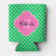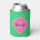 Emerald Green Wht Dots Hot Pink Quat Name Initial Can Cooler
