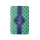 Emerald Green Wht Moroccan Pattern Navy Monogram Bath Mat