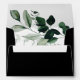 This emerald greenery black wedding invitation envelope is perfect for a boho wedding. The elegant yet rustic design features moody dark green watercolor leaves and eucalyptus with a modern bohemian woodland feel. Personalise the envelope flap with your return address. These envelopes can also be used for a bridal shower, rehearsal dinner, or any special event.