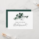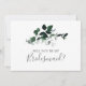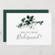 This emerald greenery bridesmaid proposal card is perfect for a boho wedding. The elegant yet rustic design features moody dark green watercolor leaves and eucalyptus with a modern bohemian woodland feel. Customise the card with the name of the bride and the bridesmaid. Personalise the back of the card with a personalised message.