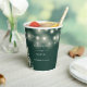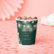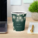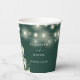 Elegant floral greenery string lights emerald green wedding paper cup personalised with your names and special wedding date. Designed by Thisisnotme©