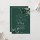 This emerald greenery green wedding invitation card is perfect for a boho wedding. The elegant yet rustic design features moody dark green watercolor leaves and eucalyptus with a modern bohemian woodland feel.