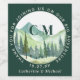 The deep forest green and emerald green colours used in the design give it a natural, rustic feel, perfect for a backwoods country wedding or a nature camping adventure. With towering mountain pine trees in the background, this design is sure to transport you and your guests to a serene forest setting.