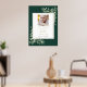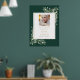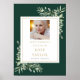 An elegant personalised celebration of life, funeral memorial service sign featuring watercolor botanical greenery foliage on an emerald green background. Designed by Thisisnotme©