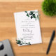 The elegant yet rustic design features moody dark green watercolor leaves and eucalyptus with a modern bohemian woodland feel.