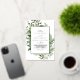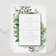 This elegant all-in-one wedding invitation is perfect for a boho-inspired celebration. Featuring moody dark green watercolor leaves and eucalyptus, it exudes a modern woodland charm with a rustic bohemian feel. Luxurious silver foil text enhances the design, while the back of the invitation includes all the details, saving paper and offering an eco-friendly solution. You can also add RSVP info for electronic replies if desired.