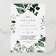 This emerald greenery silver foil all in one wedding invitation is perfect for a boho wedding. The elegant yet rustic design features moody dark green watercolor leaves and eucalyptus with a modern bohemian woodland feel. Featuring luxurious silver foil text on the front. Save paper by including the details on the back of the wedding invitation instead of on a separate enclosure card. Include the RSVP info as well if your guest will be replying electronically (optional).