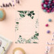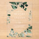 The elegant yet rustic design features moody dark green watercolor leaves and eucalyptus with a modern bohemian woodland feel.