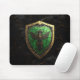 Majestic mouse pad with a golden eagle set against a glowing emerald green crystal shield. Features ornate filigree and realistic cracked textures on a premium golden veins textured marble black surface. Designed for fantasy lovers and nature-themed gaming desk setups.
