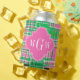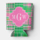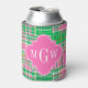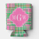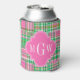 Emerald Hot Pink Preppy Patchwork Madras Monogram Can Cooler