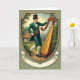 Emerald Irish Man Harp Scene Card