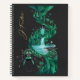 A premium spiral notebook featuring a striking beetle design set against a lush emerald island backdrop. The deep black cover enhances the vibrant green tones, creating an elegant and eye-catching contrast.