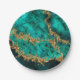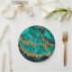 Emerald Jade Gold Splatter Abstract Paper Plate