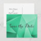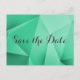Sharp and modern Jewel Tones Wedding Save the Date Postcard featuring an emerald green funky geometric triangle background. This chic and simple design is a unique choice for announcing a modern wedding. Easy to customise with your wedding details. Click "Customise It" to find more personalisation options.