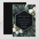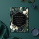 This design features a dramatic composition of deep emerald foliage and elegant white blooms, creating an atmosphere of sophisticated botanical romance. The rich green tones are complemented by hints of darker accents and the striking presence of creamy white orchids. It evokes a moody yet luxurious feel, perfect for a distinguished occasion.