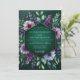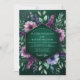 Evoke a sense of moody romance with this enchanting botanical design. A deep emerald green background sets the stage for a lush arrangement of purple, mauve, and lavender blossoms. Painterly dahlias and delicate sprigs of wildflowers are nestled amongst verdant green leaves, creating a sophisticated and mystical ambiance.