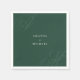 A simple modern minimalist design with an elegant edge, this unique wedding napkin design features beautiful calligraphy script monograms of the bride and groom on alternate corners. The bride and groom's names are centred with a clean classic look on an emerald green background with ivory text. Replace the sample text with your information. You may move your initials slightly left or right, up or down to accommodate their best display in this design format. The monograms look best when they run slightly off the edges. When personalising the design in the text template, you can open the full editor by selecting "edit using design tool" at the bottom of the text template.
