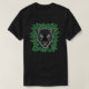 A striking black t-shirt featuring the majestic silhouette of a panther's head outlined in white, its piercing emerald green eyes capturing attention against the dark background, surrounded by lush green foliage that adds an air of mystery and intrigue.