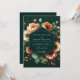 Embrace a moody and romantic atmosphere with this stunning artistic floral design. A deep emerald background makes the delicate blooms pop in shades of soft peach, warm apricot, and creamy ivory. Lush, painterly poppies and peonies are artfully arranged with muted green foliage, creating a sophisticated and dramatic botanical masterpiece for your special day.