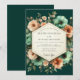 Embrace opulent romance with this stunning botanical design. A dramatic emerald green background highlights a lush arrangement of anemones and poppies. Painterly blossoms in vibrant teal, soft peach, and warm coral create a beautiful, high-contrast composition for an elegant union.