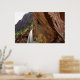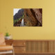 One of the famous sights of Zion National Park is the series of Emerald Pools. This picture shows the waterfall which flows from the Middle Emerald Pool into the lower one from almost underneath the falls. The pale green of spring leaves on the trees contrasts nicely with the shades of red and orange in the rocks. This photo is also featured as the widescreen wallpaper "Emerald Pool Falls III" from MLeWallpapers.com. Check out our store for more photos from Zion National Park and other US National Parks.