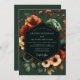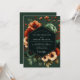 Embrace a dramatic and romantic atmosphere with this stunning floral arrangement. Rich, burnt orange and cream poppies stand out against a deep emerald green background. Hints of muted green foliage and delicate buds create a lush, moody composition perfect for an autumn or bohemian affair. This design captures a sense of sophisticated and artful elegance.