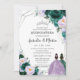Emerald Purple Floral Twins Quinceañera Silver Invitation