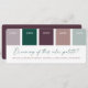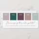 Get your colour palette swatch cards to help with planning and coordinating your wedding details, decorations, and stationery. Give them out to the wedding party, bridesmaids, or wedding planner!