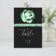 Number your reception tables with a Emerald Rose Reception table card. Table card design features an emerald rose adorned with a fancy floral banner. Personalise with the groom and bride's names along with the wedding date. Additional wedding stationery available with this design as well.