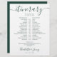 This stylish emerald green and white wedding itinerary schedule-timeline can be personalised with your wedding details in chic lettering. Designed by Thisisnotme©