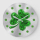 10.75” round acrylic wall clock with an image of an emerald shamrock on gleaming silver and an emerald clock face. See the entire St. Patrick's Day Clock collection under the HOME category in the HOLIDAYS section.
