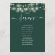 These elegant emerald green double-sided table number seating chart cards featuring pretty string lights are perfect for all celebrations. Designed by Thisisnotme©