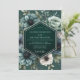 Embrace a sense of sophisticated romance with this stunningly artistic floral arrangement. A deep emerald green background provides a dramatic canvas for lush blooms in shades of moody teal, dusty blue, and soft sage. Painterly anemones, delicate roses, and ivory blossoms intertwine with verdant foliage, creating an elegant composition.
