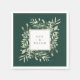 Featuring delicate watercolor greenery leaves and a gold frame on an emerald green background, these chic botanical paper napkins can be personalised with your names. Designed by Thisisnotme©